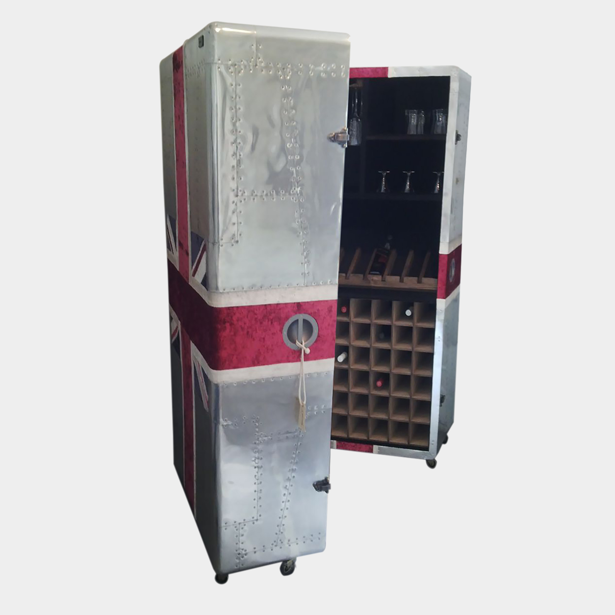 Harrier Drinks Cabinet (folding) - Union Jack crushed velvet
