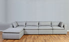 This set includes two corner modules and two middle modules, as well as its own matching ottoman.