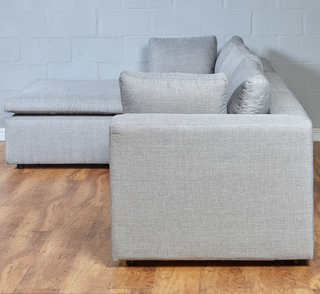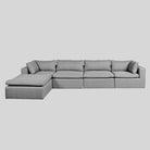 Clean lines and a streamlined silhouette define the Ashford Modular Sofa’s striking design. Upholstered in a linen blend, the sectional components offer flexible configurations to best fit your living room layout and extra-depth cushioning for luxuriating in comfort.