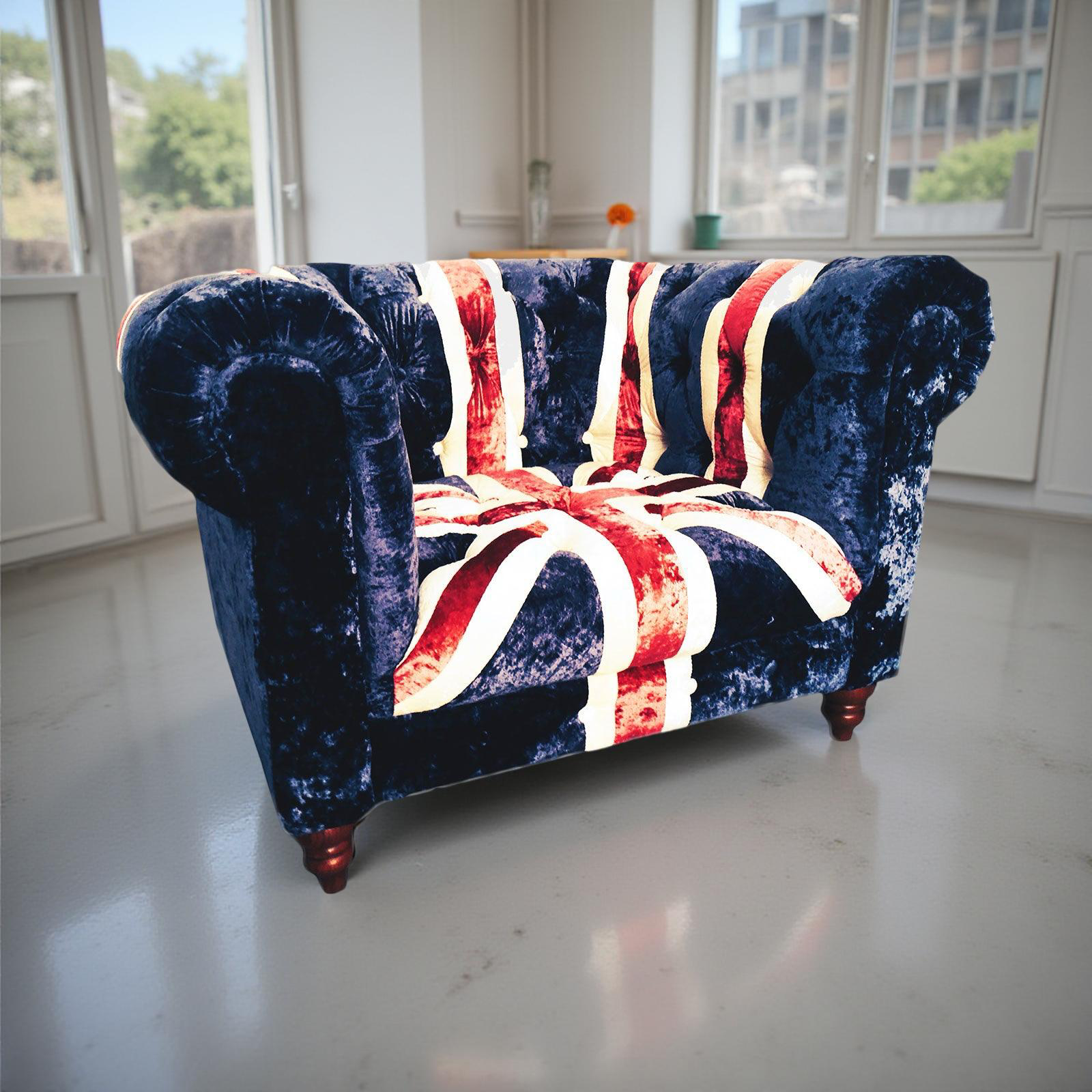 Harrier Armchair- Union Jack crushed velvet