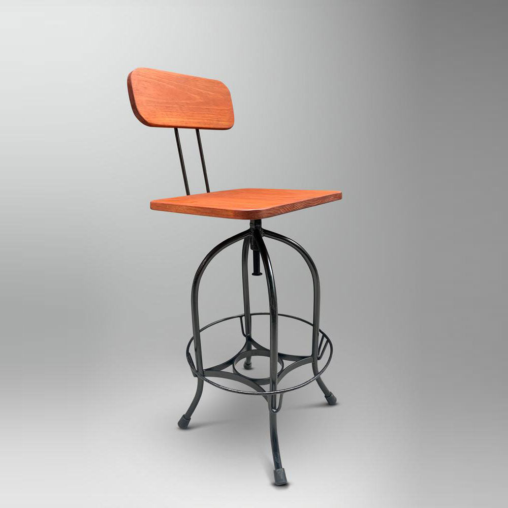 The Toledo bar chair has a vintage industrial design with its metal crafted frame and wood sat and backrest. The chair swivels to allow height adjustment