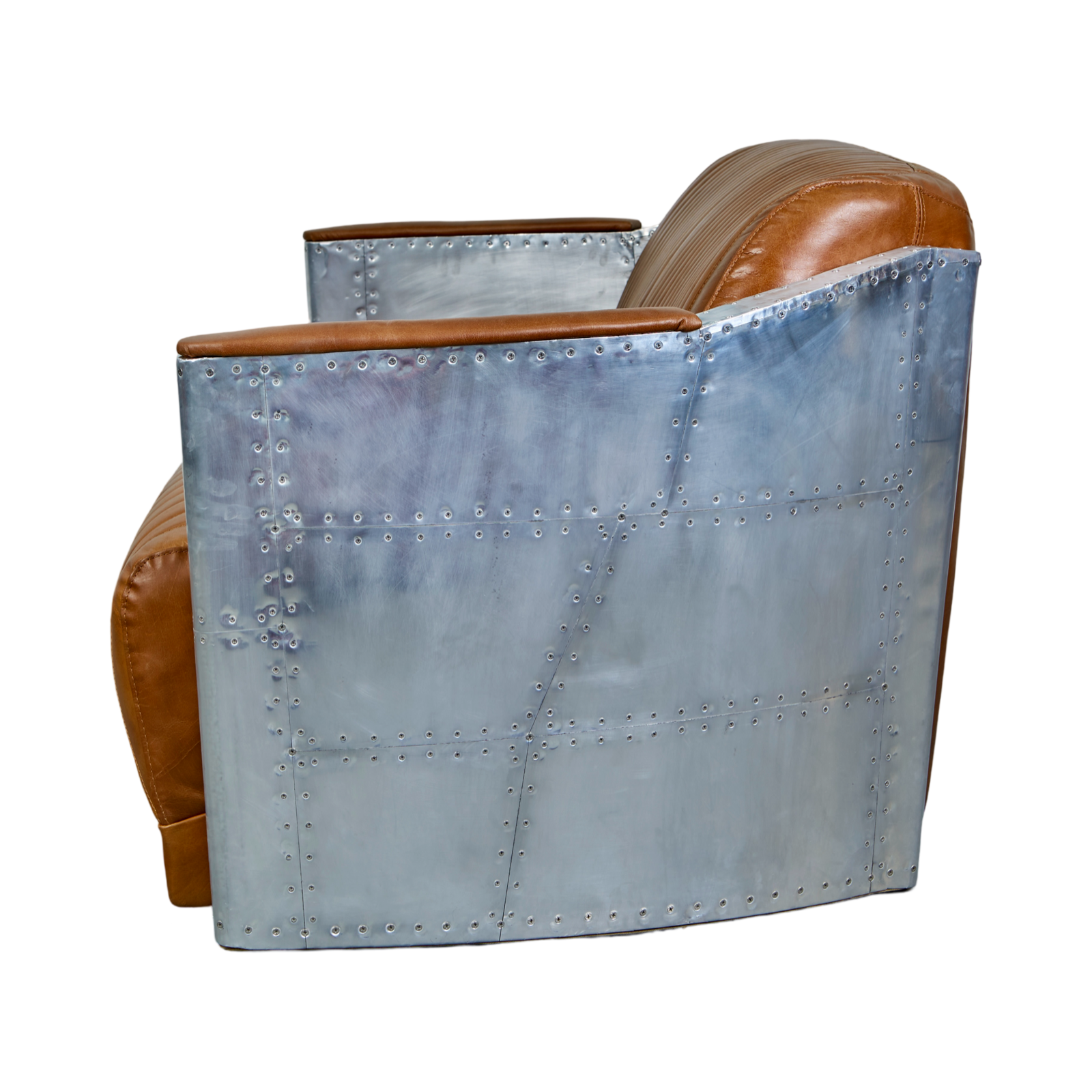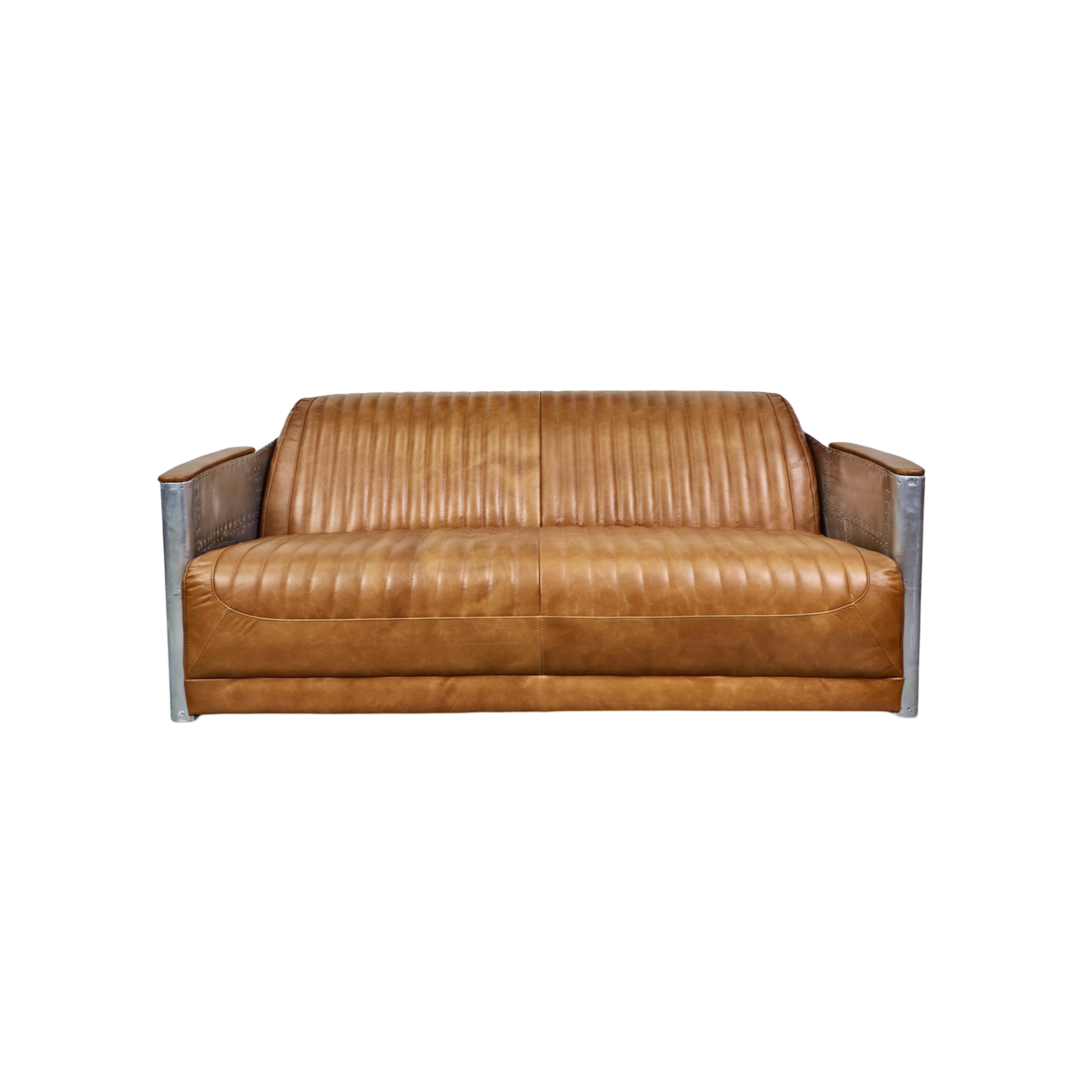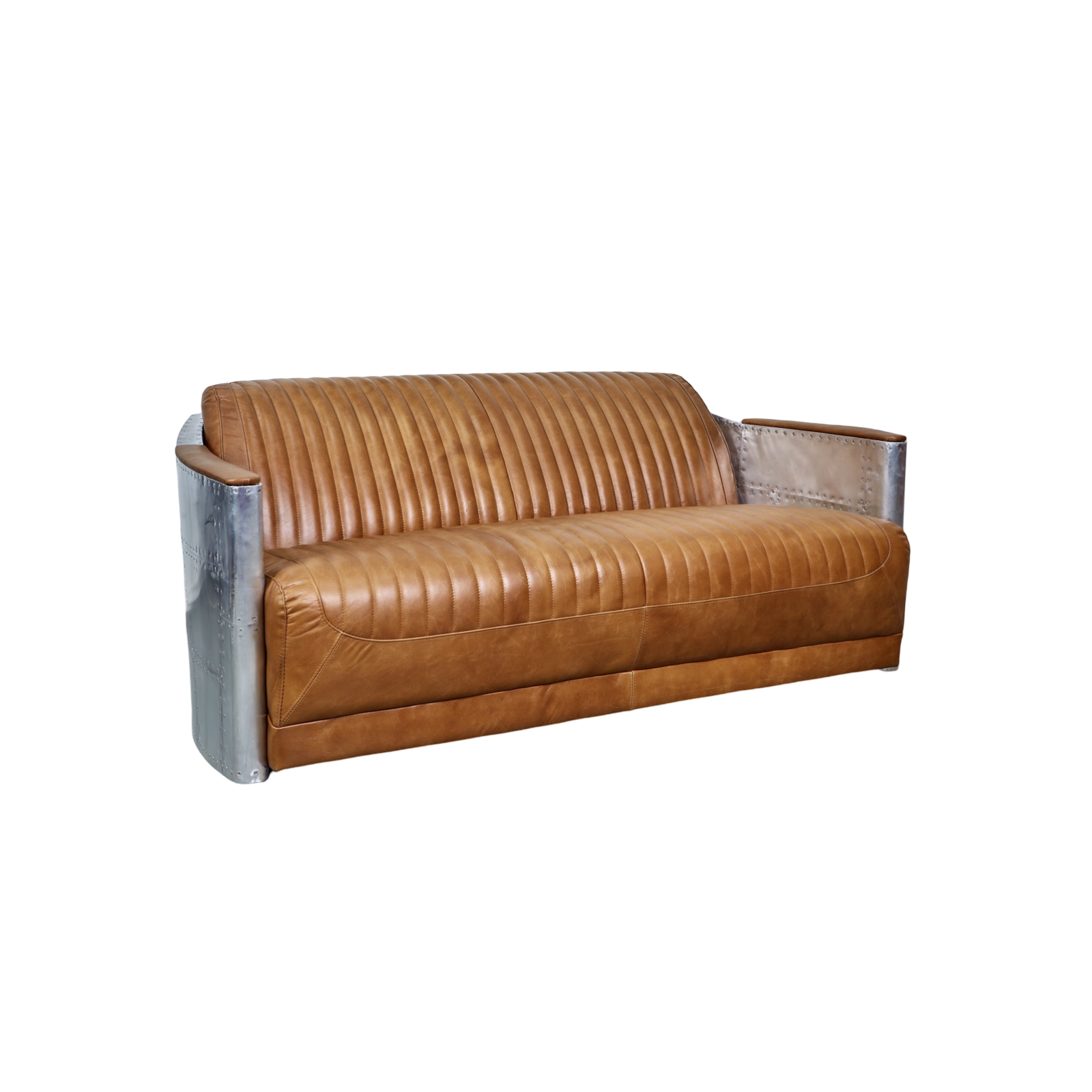 Take flight in our iconic Spitfire Tomcat 3-Seater Sofa. Imbuing the spirit of adventure with an aviation-style aero-aluminium paneling and stainless screws. Meticulously hand-crafted by our skilled artisans, the impressively broad bench seat is upholstered in ribbed Brazilian leather.