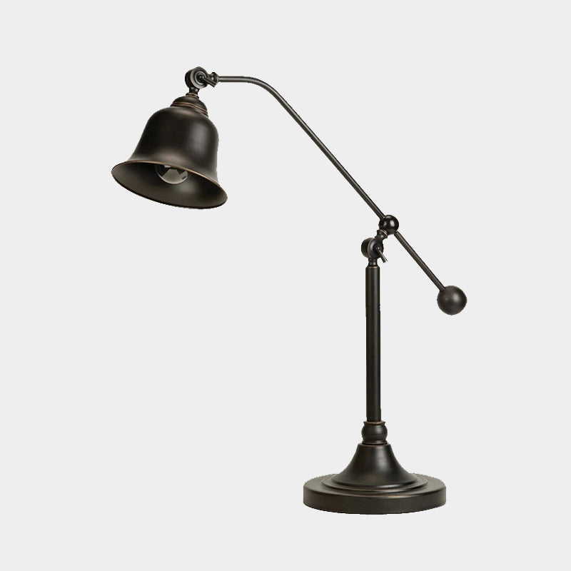 A cantilever table lamp with vintage industrial styling finished in dark bronze metal. The proportions are excellent and it features two adjustment points.