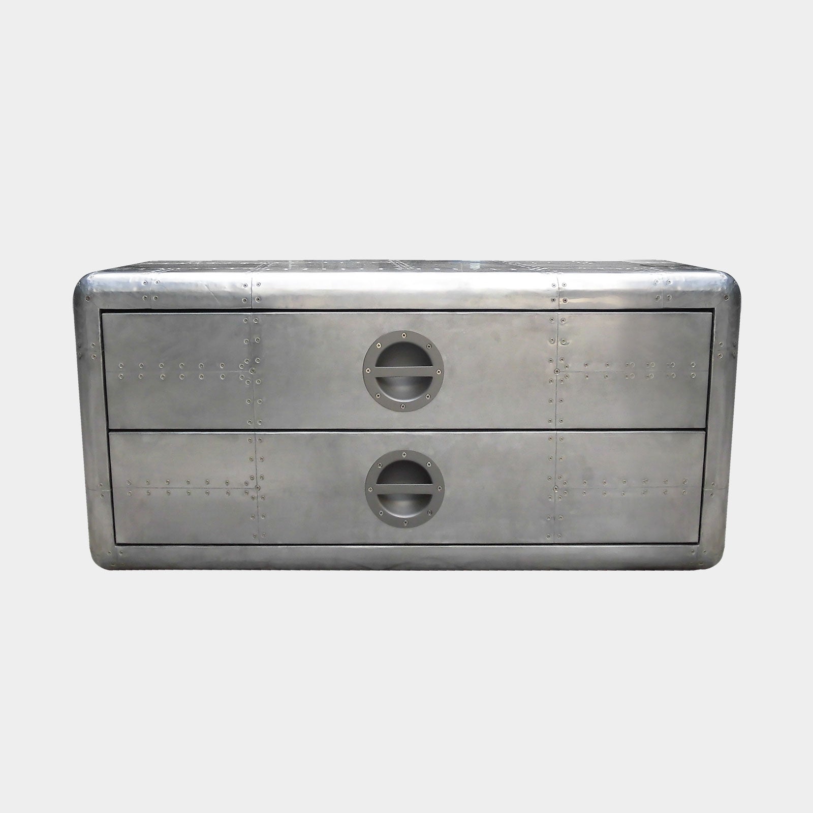 The Dauntless is an Aero-aluminium two drawer chest of drawers beautifully crafted with stainless steel screws. Featuring uber cool industrial style handles and soft close drawers.