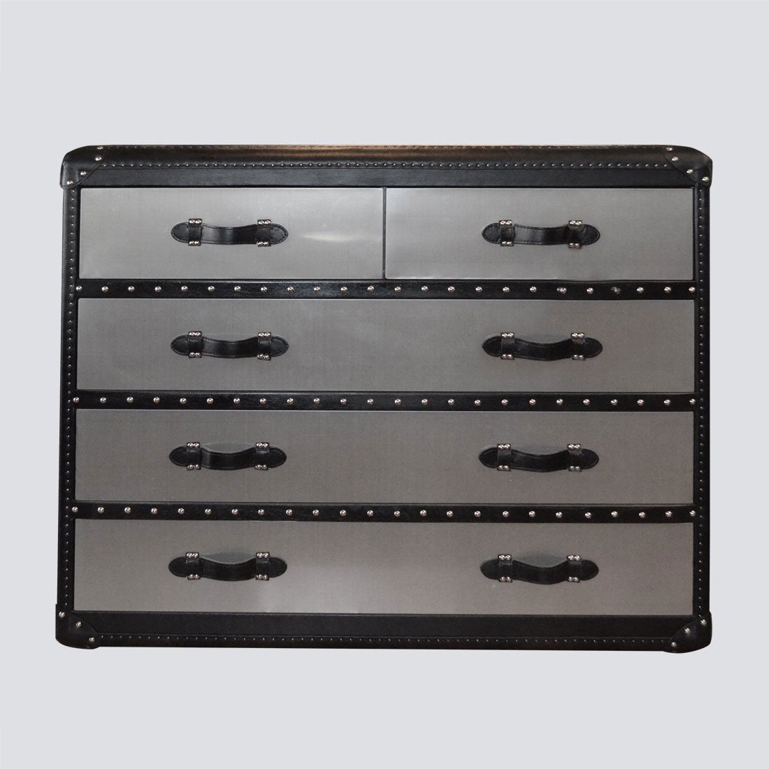 The Liberator Chest of Drawers is beautifully made by hand using vintage leather and aluminium.