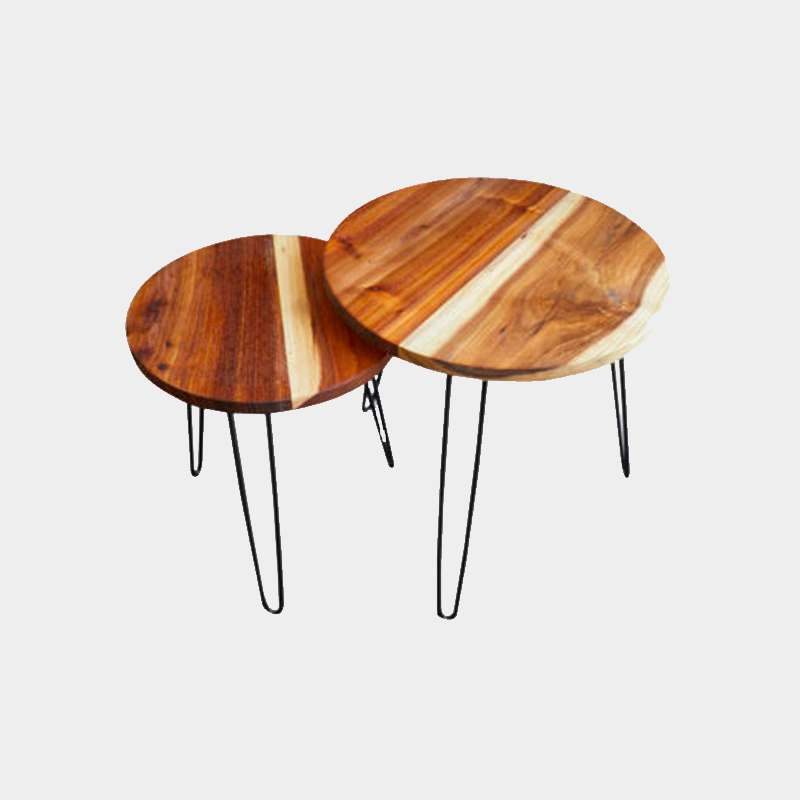 The nesting table set is made with beautiful solid Blackwood which is indigenous to South Africa. Each table top sits beautifully on hand-made hairpin legs. Simple yet very elegant! A proudly South African piece