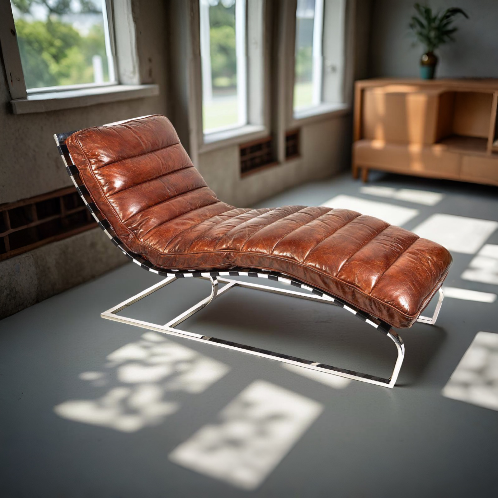 Barcelona Lounger - Brazilian leather and stainless steel