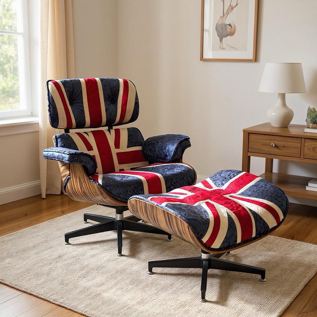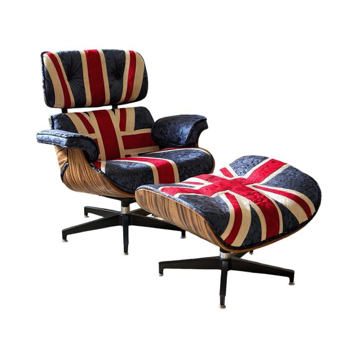 This timeless classic lounger upholstered in Union Jack design crushed velvet! Make a statement in comfort