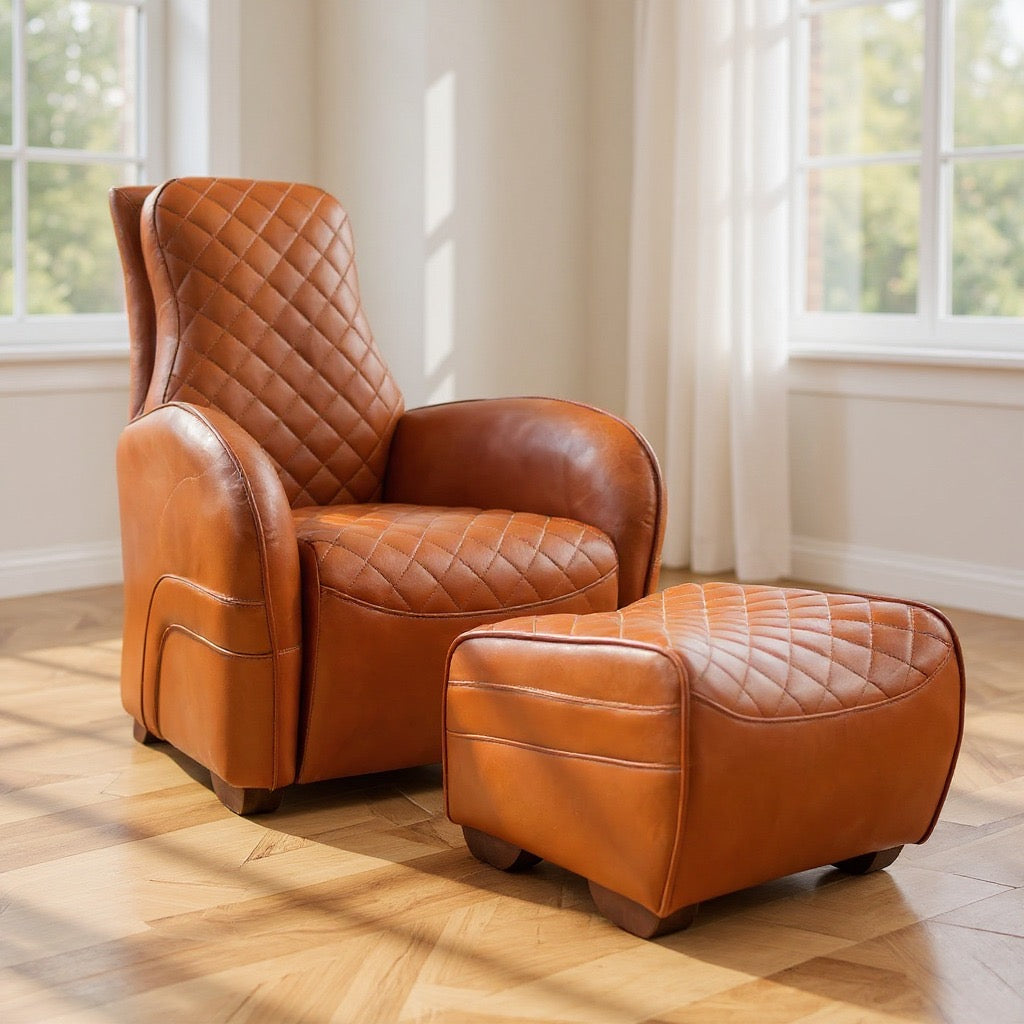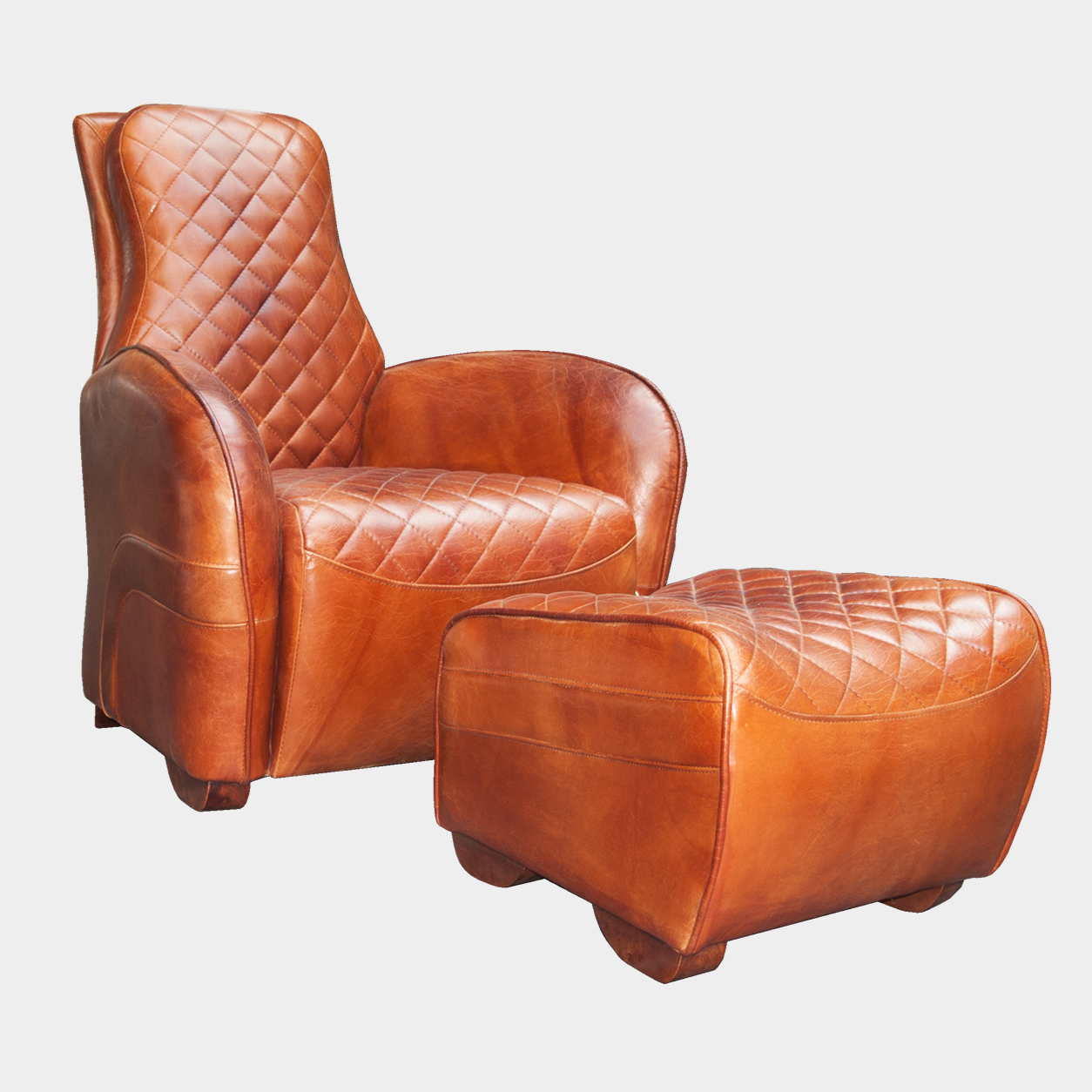 The Harvard lounger invites you to relax and put your feet up in style! Featuring Vintage brown Brazilian leather with diamond stitching detail