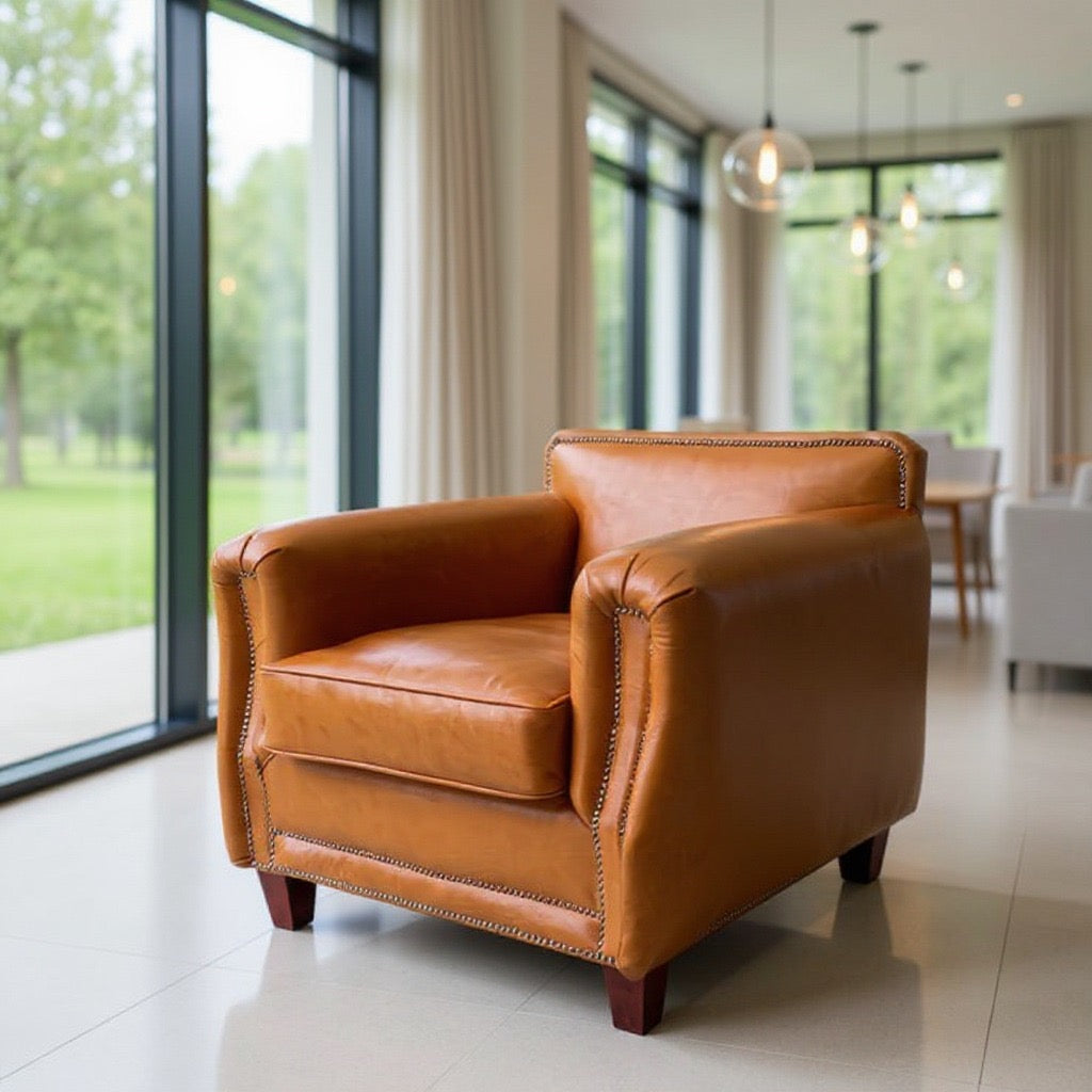 The Avenger armchair is not only sophisticated and elegant but very comfortable. Classic design with extra depth and upholstered in beautiful full grain leather