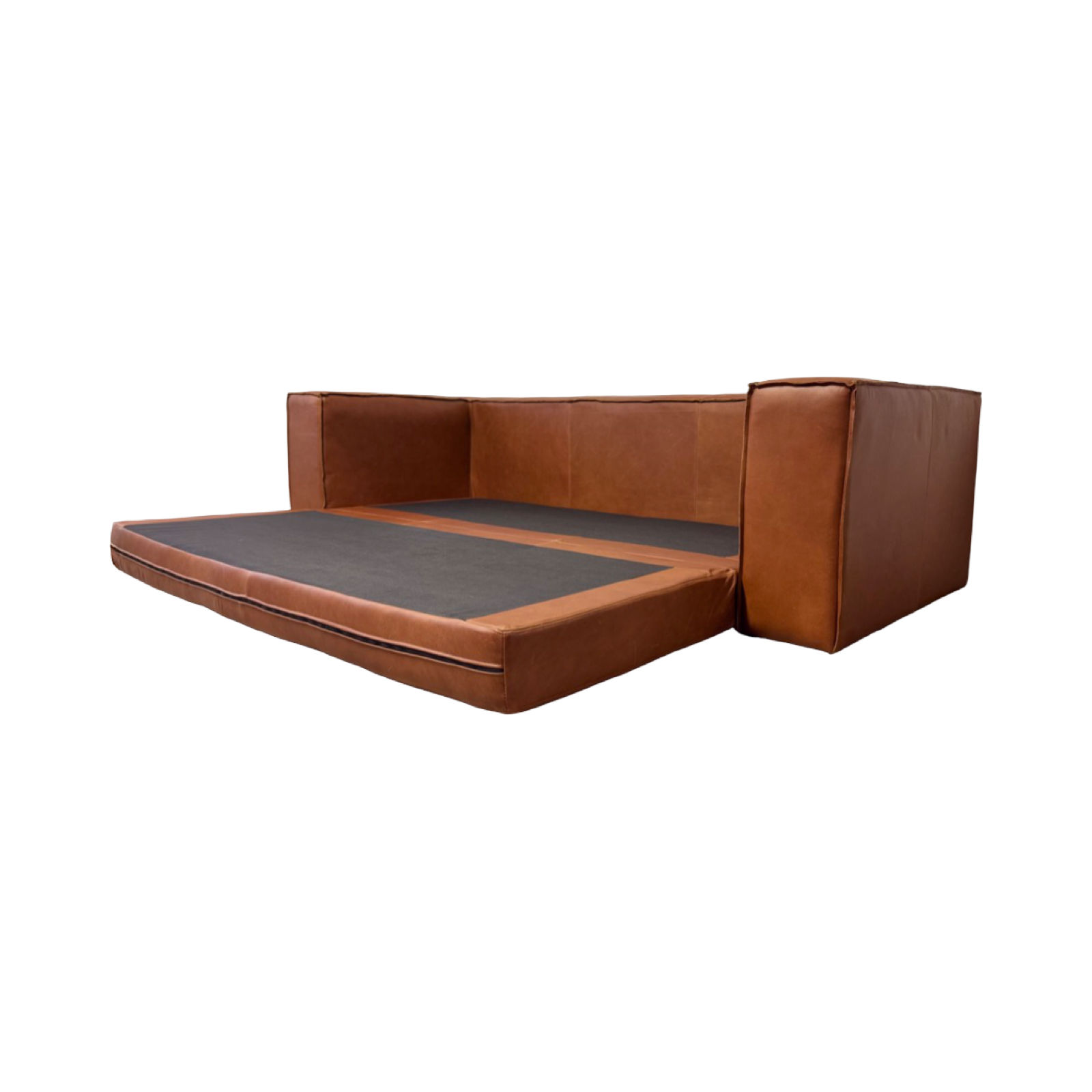 The Armstrong Sleeper couch features full grain leather, broad arms and extra depth. This sofa combines style and practicality as it can be enjoyed as a stylish and comfortable sofa as well as a sleeper couch once folded out.