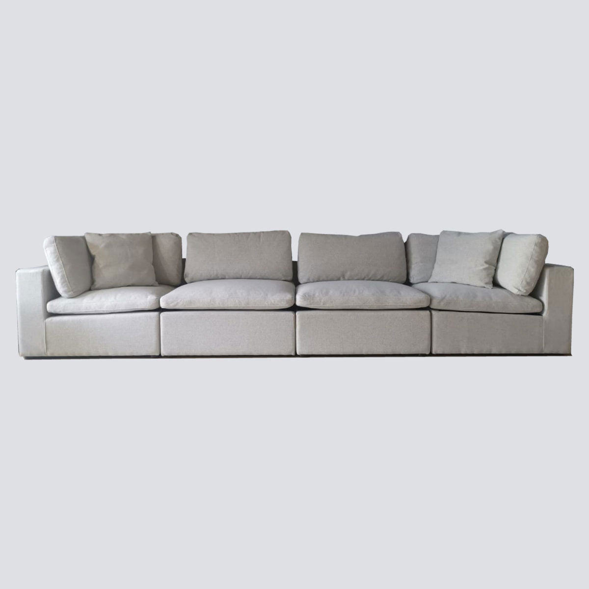 The Ashford modular sofa features a beautiful design, upholstered in a light grey fabric with great dimensions and extra depth for your comfort.