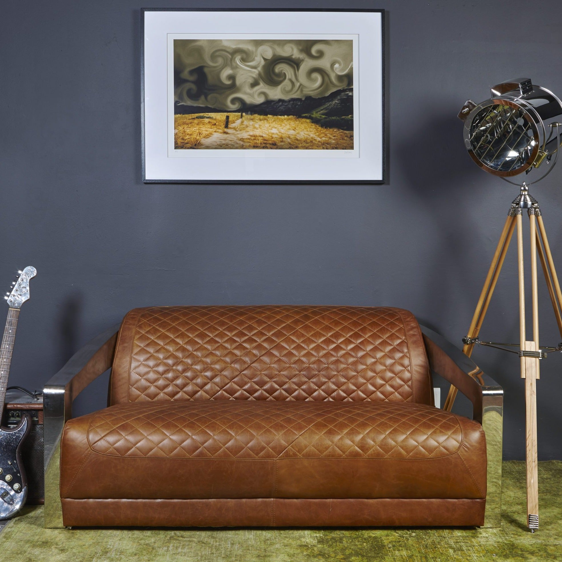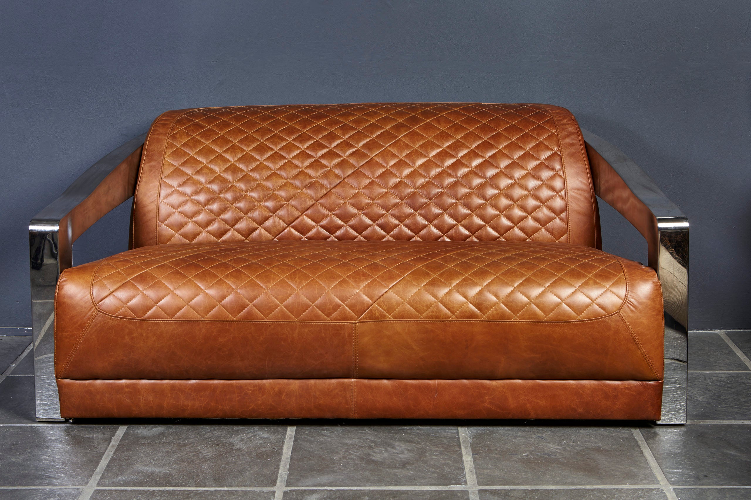 Hudson 2 Seater Sofa (Open Arms) - Brazilian leather and Stainless steel