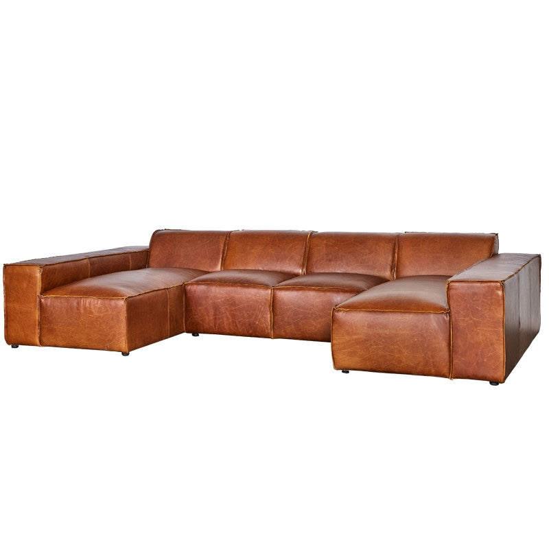 The Marchetti Leather U-Shaped Modular Sofa is a new addition to the popular Marchetti collection. This model consisting of two daybeds is the epitome of contemporary design matched with classic comfort. Generous square dimensions and low to the floor, with on trend exposed seam stitching that enhances the range’s effortless style.