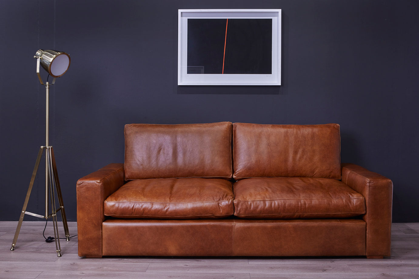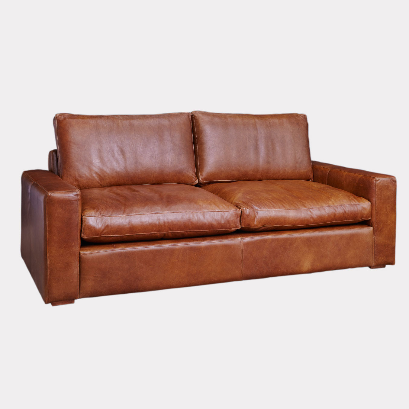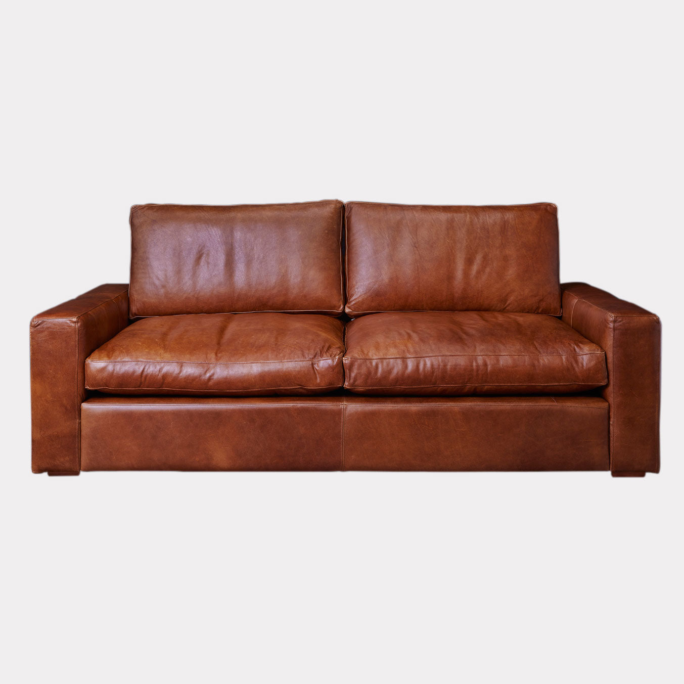 Clean lines and supreme comfort define the modern design of the Ventura 3 Seater sofa. The generous proportions of the padded full grain leather cushions, paired with broad track arms, create sleek features that are sure to invite attention. Add a sense of contemporary comfort to living room entertaining and lounging.
