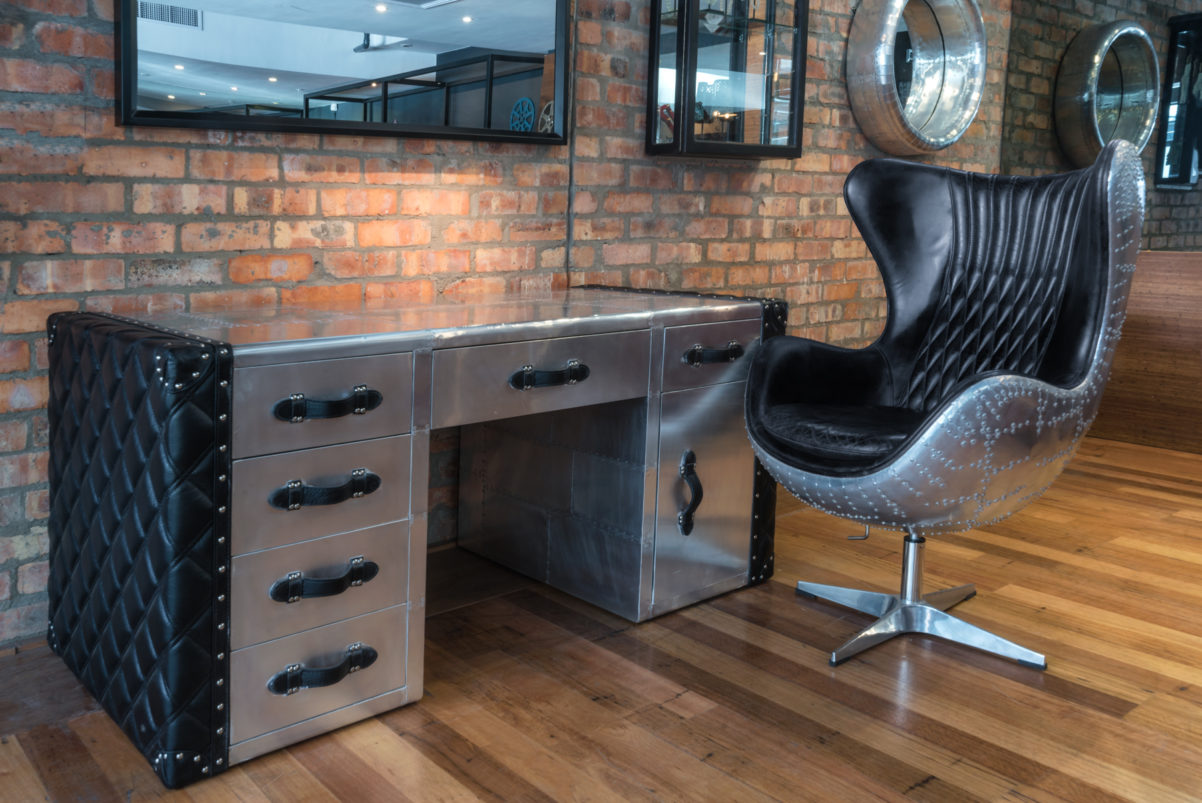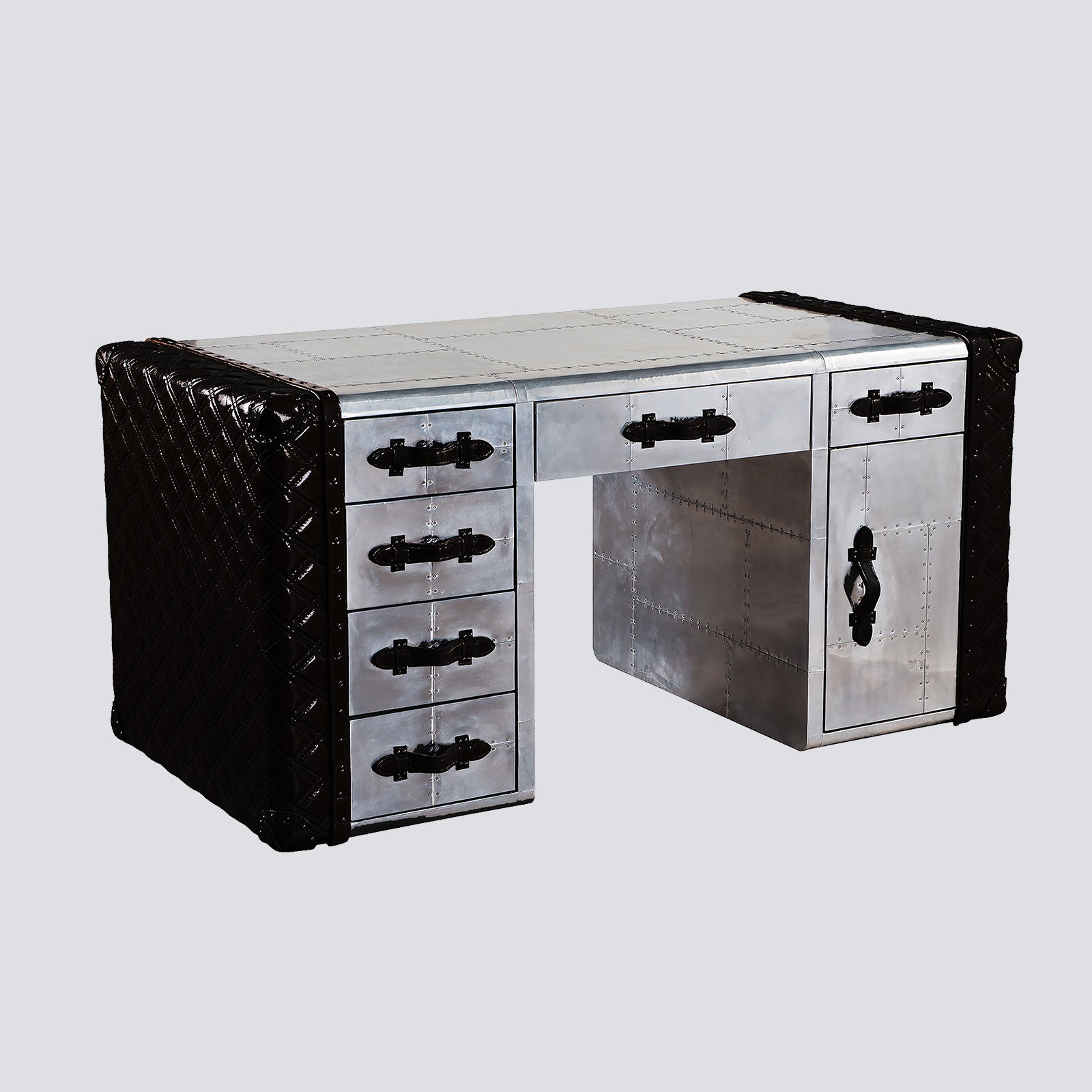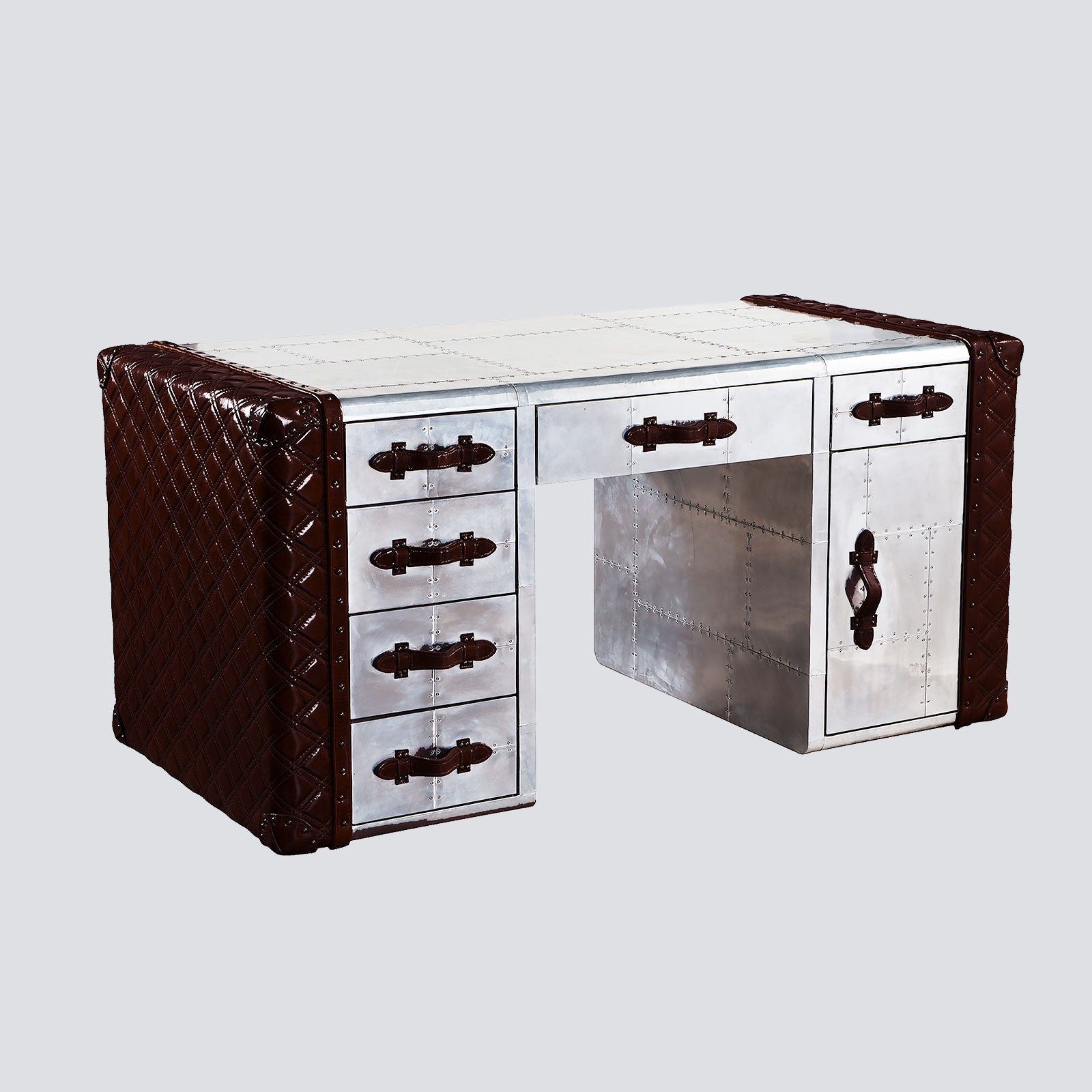 Sabre 7 Drawer Desk - Aero Aluminium and Brazilian leather