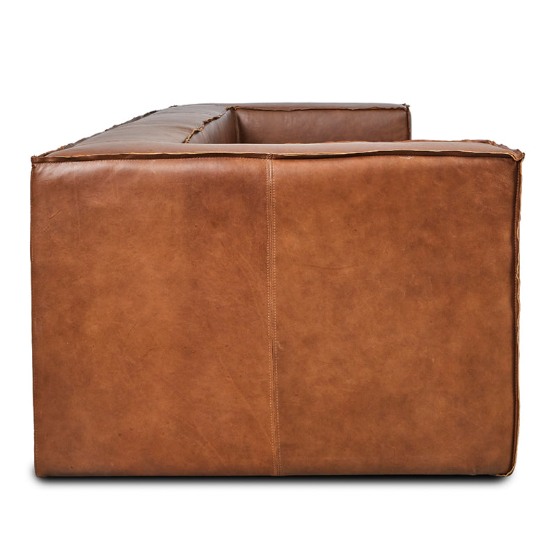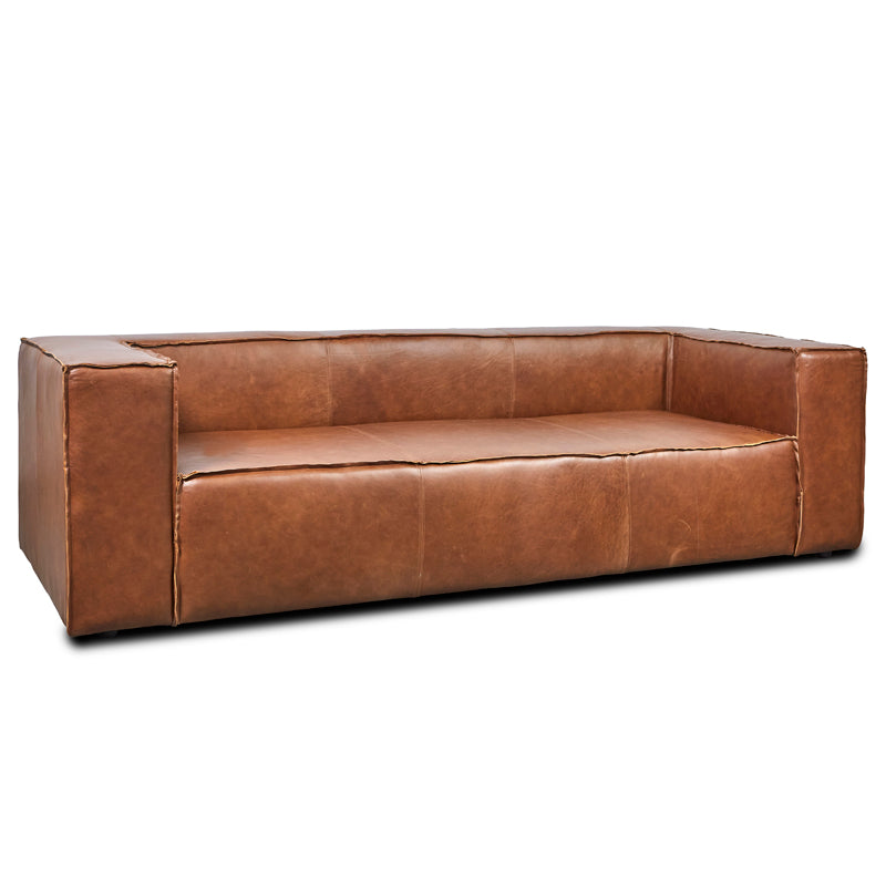 Enhance your home with a sense of presence. Full grain leather, broad arms and extra depth make the Armstrong 3 Seater Sofa ideal for creating a warm and inviting space in any lounge or living room. Exposed seam detailing adds a distinctive touch and the robust, vintage upholstery which will last for years, promising countless hours of luxury and leisure.