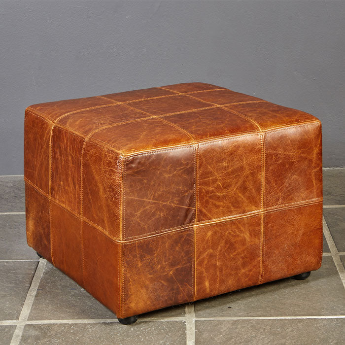 The Medium Foxtrot Leather Ottoman is both functional and decorative. The full-grain vintage leather is a stylish accent to offset any living area in your home and this timeless, versatile piece can serve as additional seating, a perch for outstretched legs or used in place of a coffee-table for cosy kicking back and hanging out.
