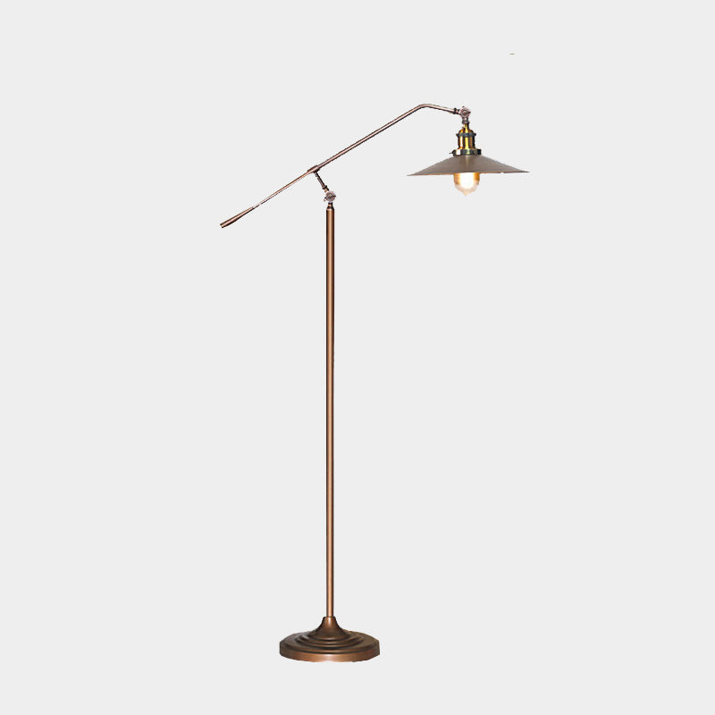 A beautifully designed vintage industrial floor lamp made of dark bronze and copper metal. This cantilever loft style lamp has two adjustment points to create various different lighting positions.