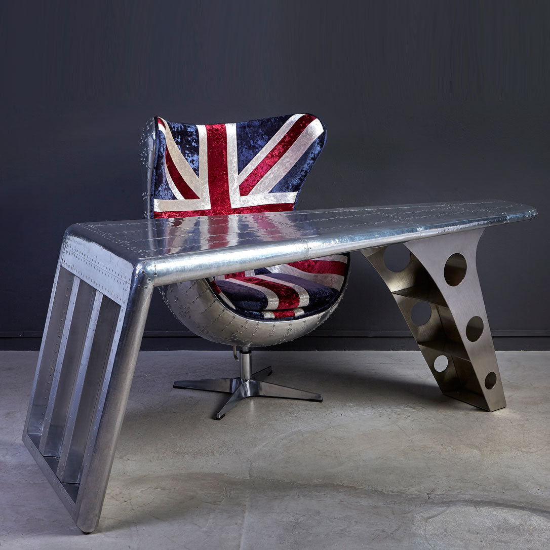 The Marauder wing desk demands attention! This iconic design features an aluminium top which sweeps downwards into the leg section with three inserts reminiscent of an airplane wing. The supporting leg is made of solid stainless steel.