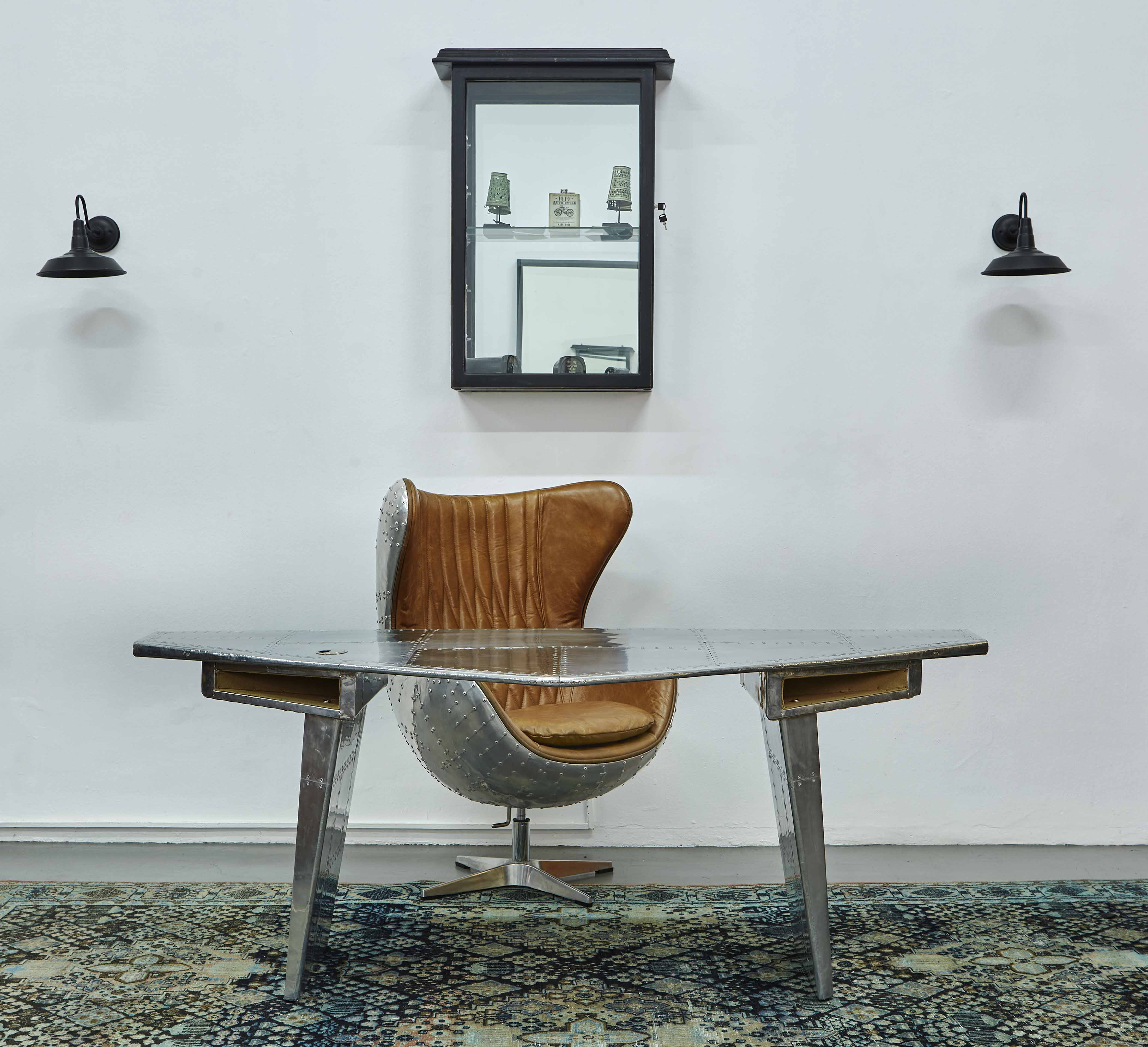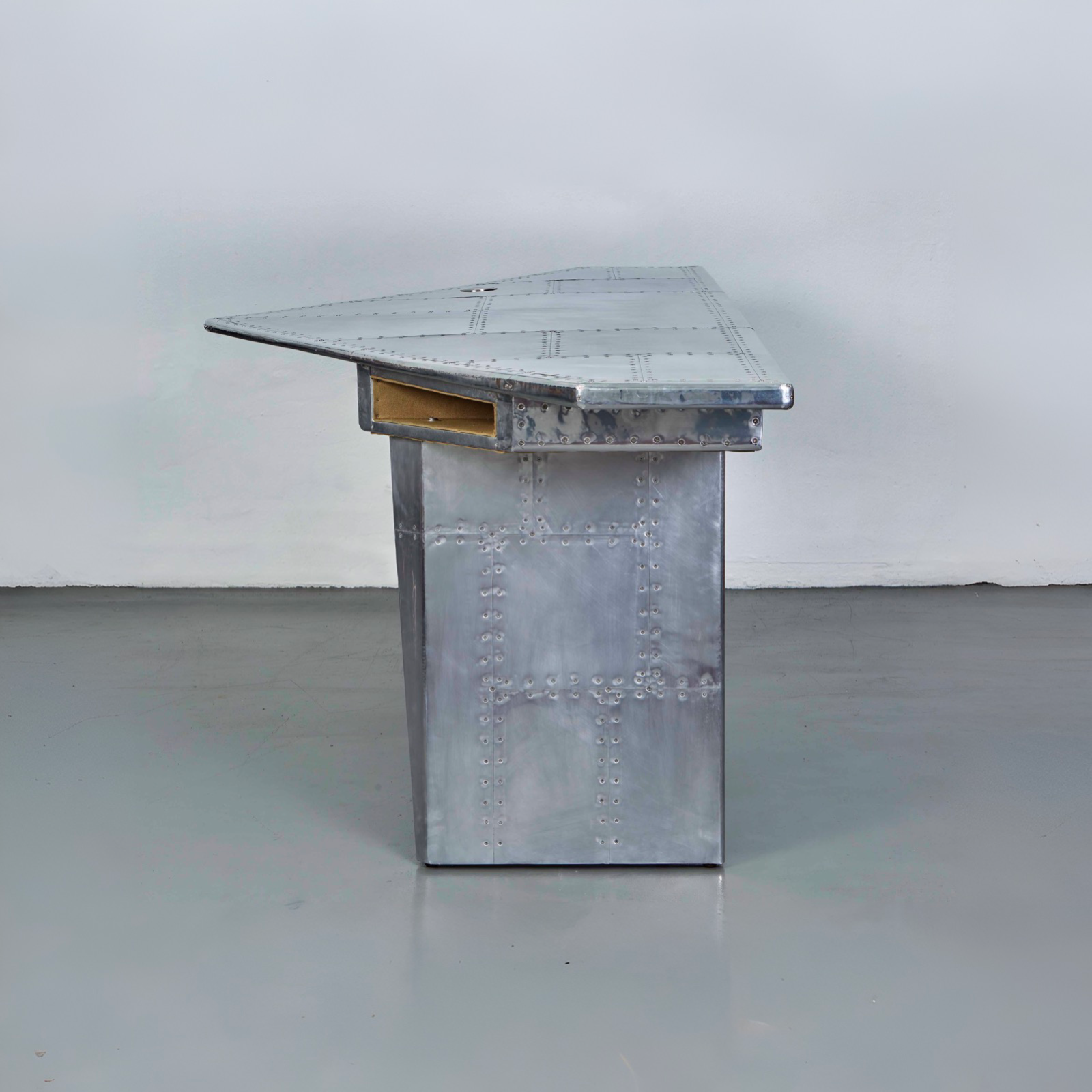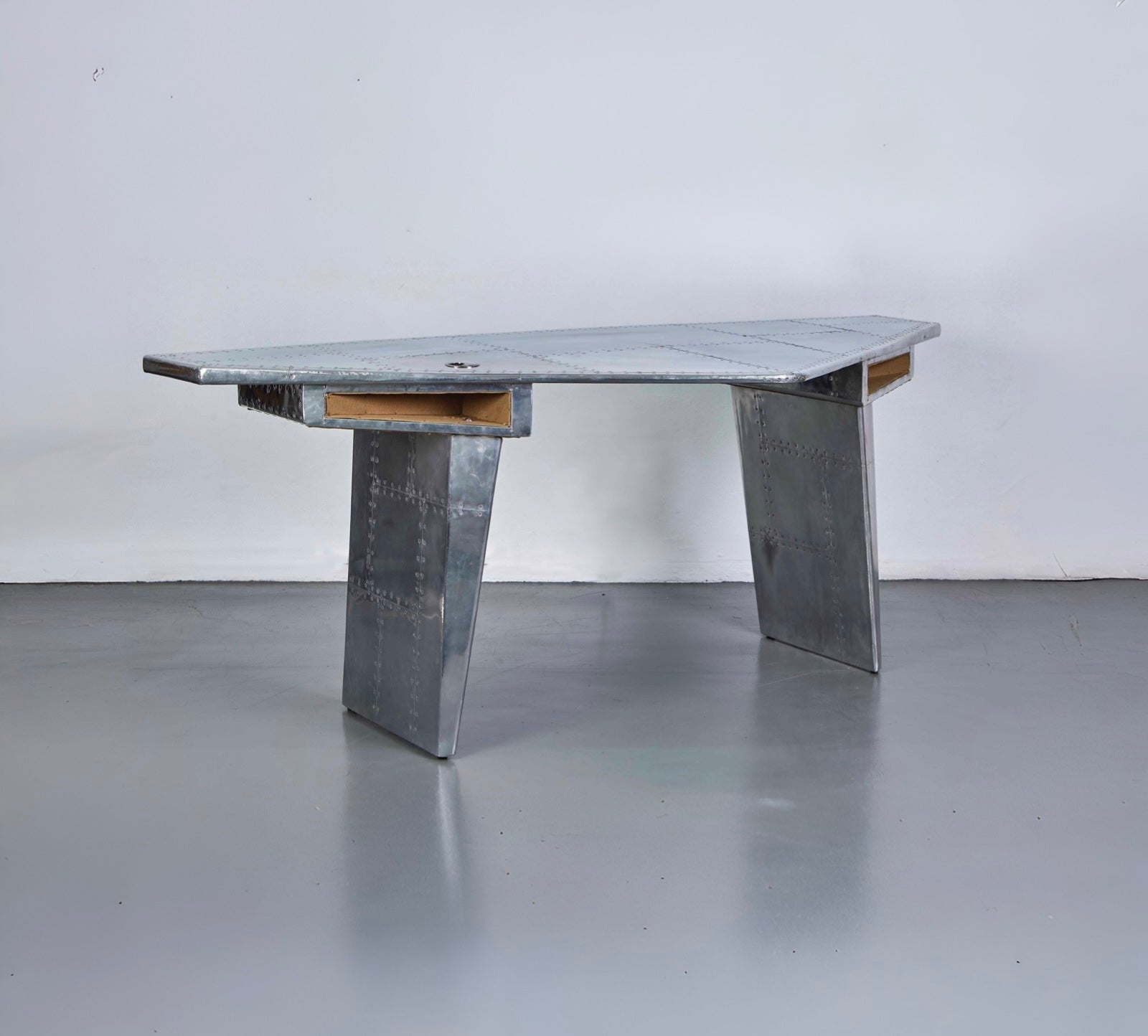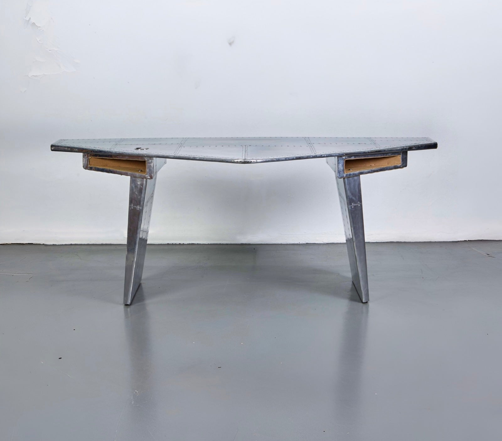 The Stealth desk is styled on the iconic aircraft of the same name. Its angular design features aero-aluminium with two storage areas upholstered in canvas. Take flight and be the captain of your office!