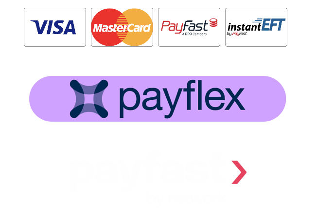 Payment gateways provided by Payfast and Payflex are 100% Secure and PCI DSS compliant.